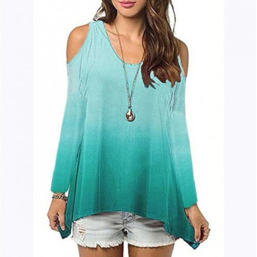 Bare Shoulder Loose Style Long Sleeves Women Top - Green