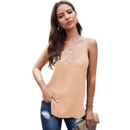 Apricot Elegance: Lace Detail Striped Slim-Fit Top