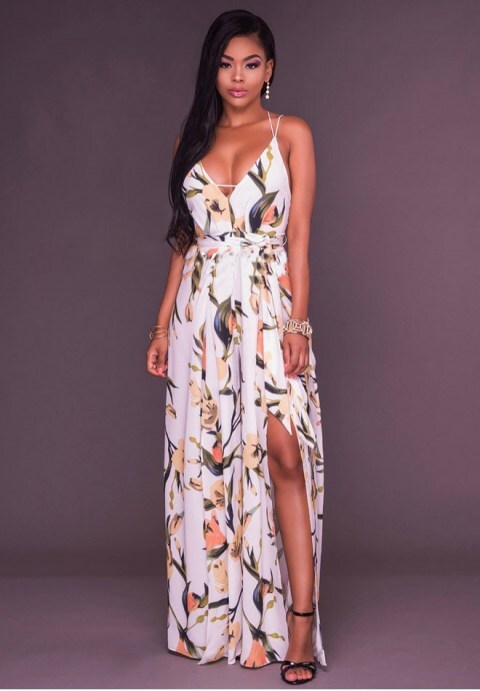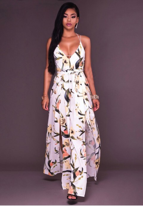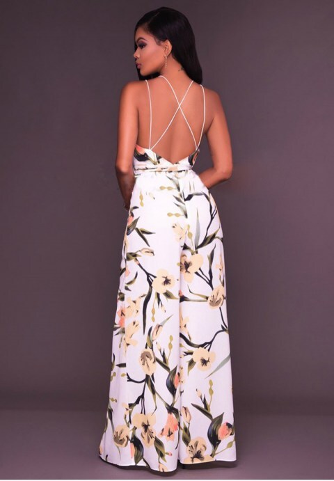 Bloom Allure: Floral Slit-Leg Jumpsuit with Strappy Back