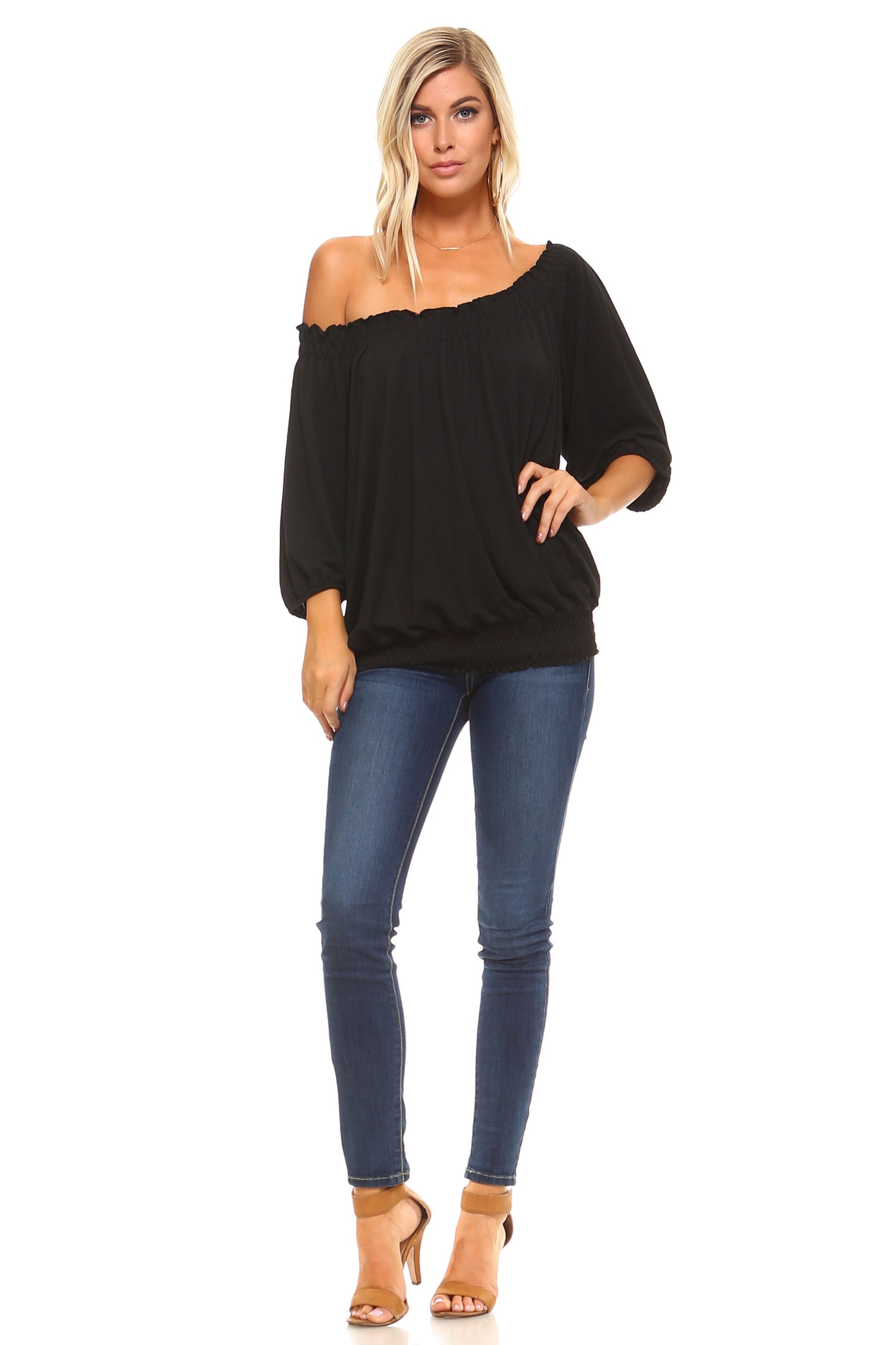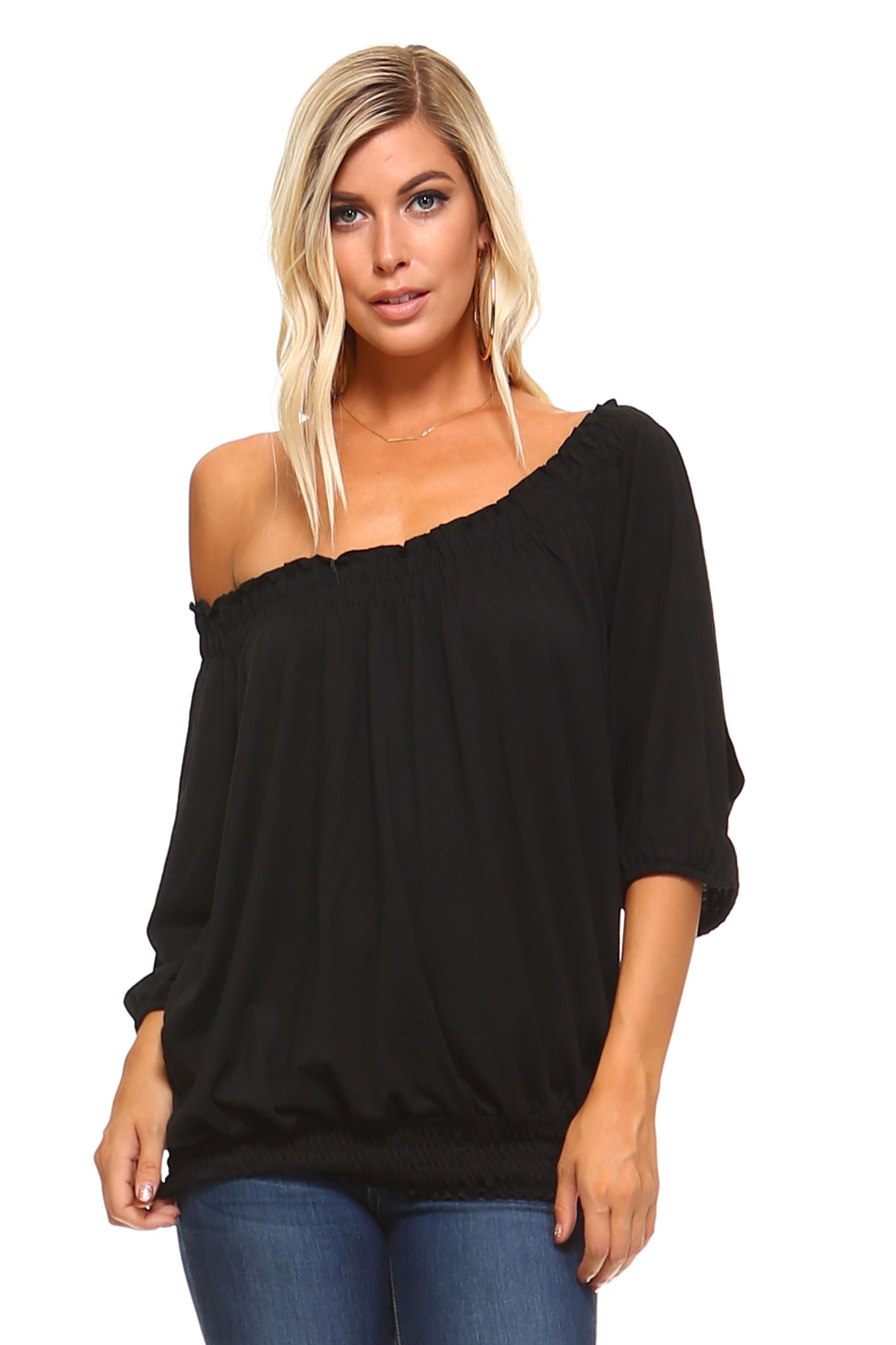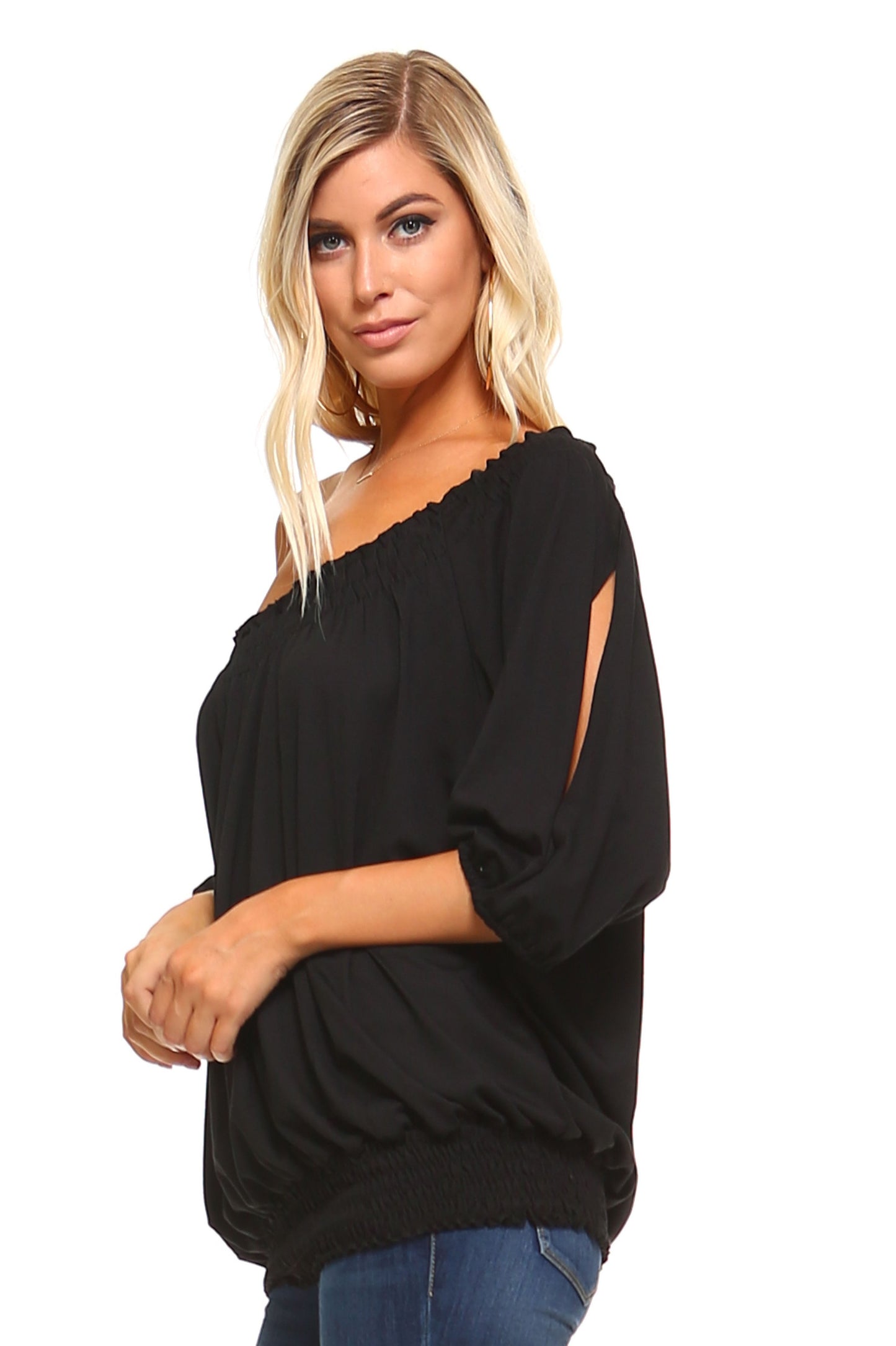 Willow Breeze: 3/4 Sleeve Peasant Top with Elastic Neckline
