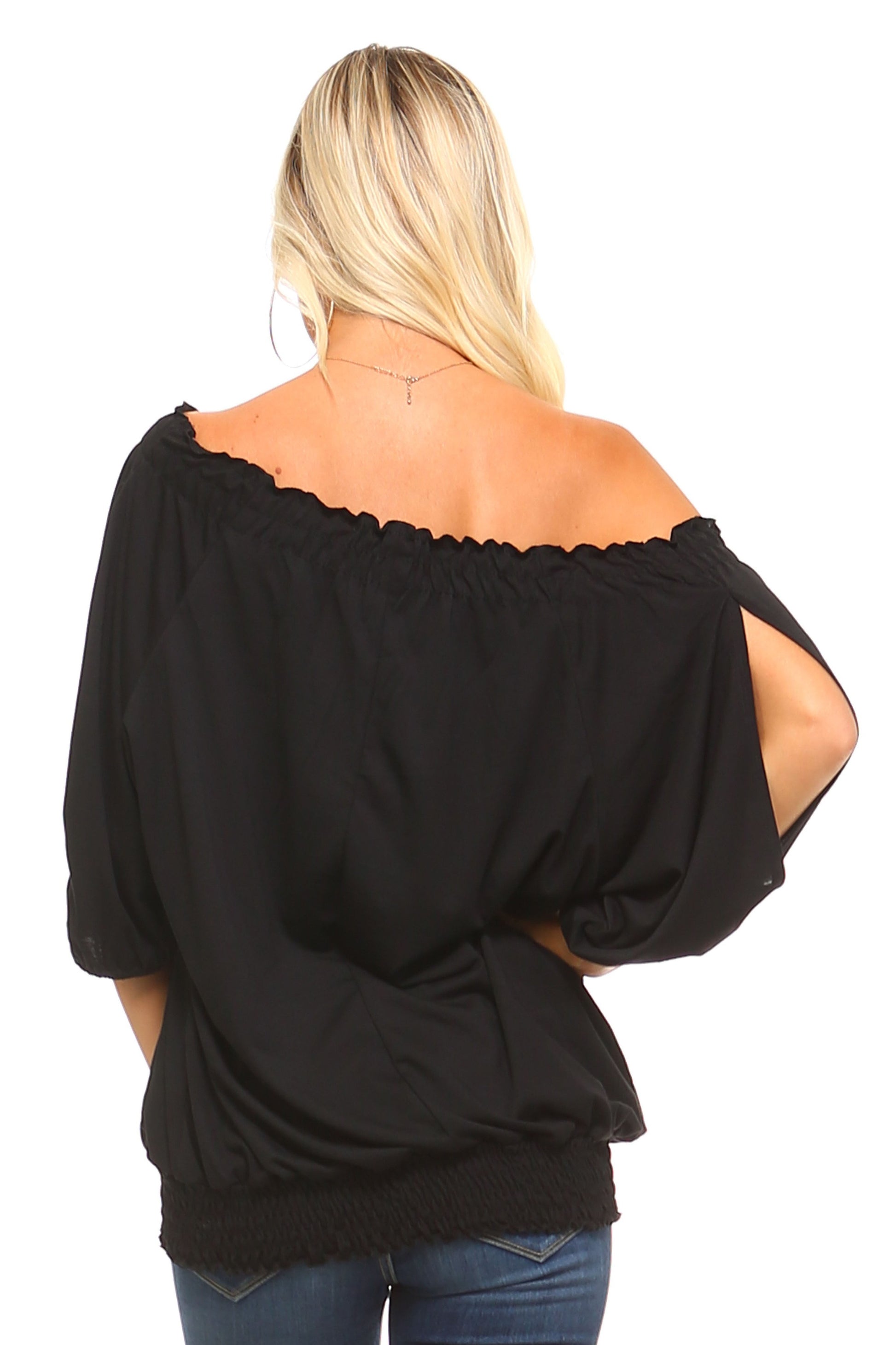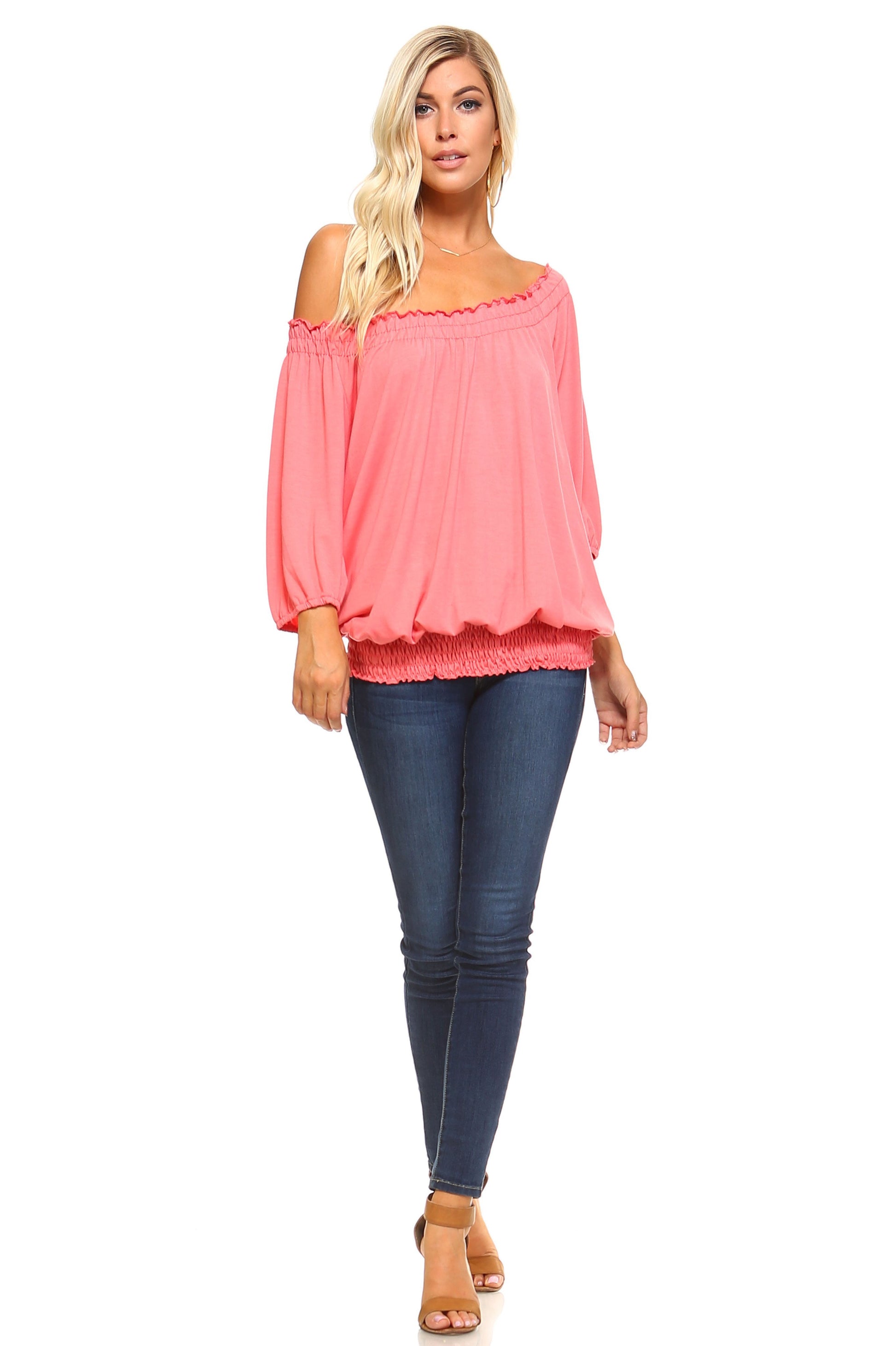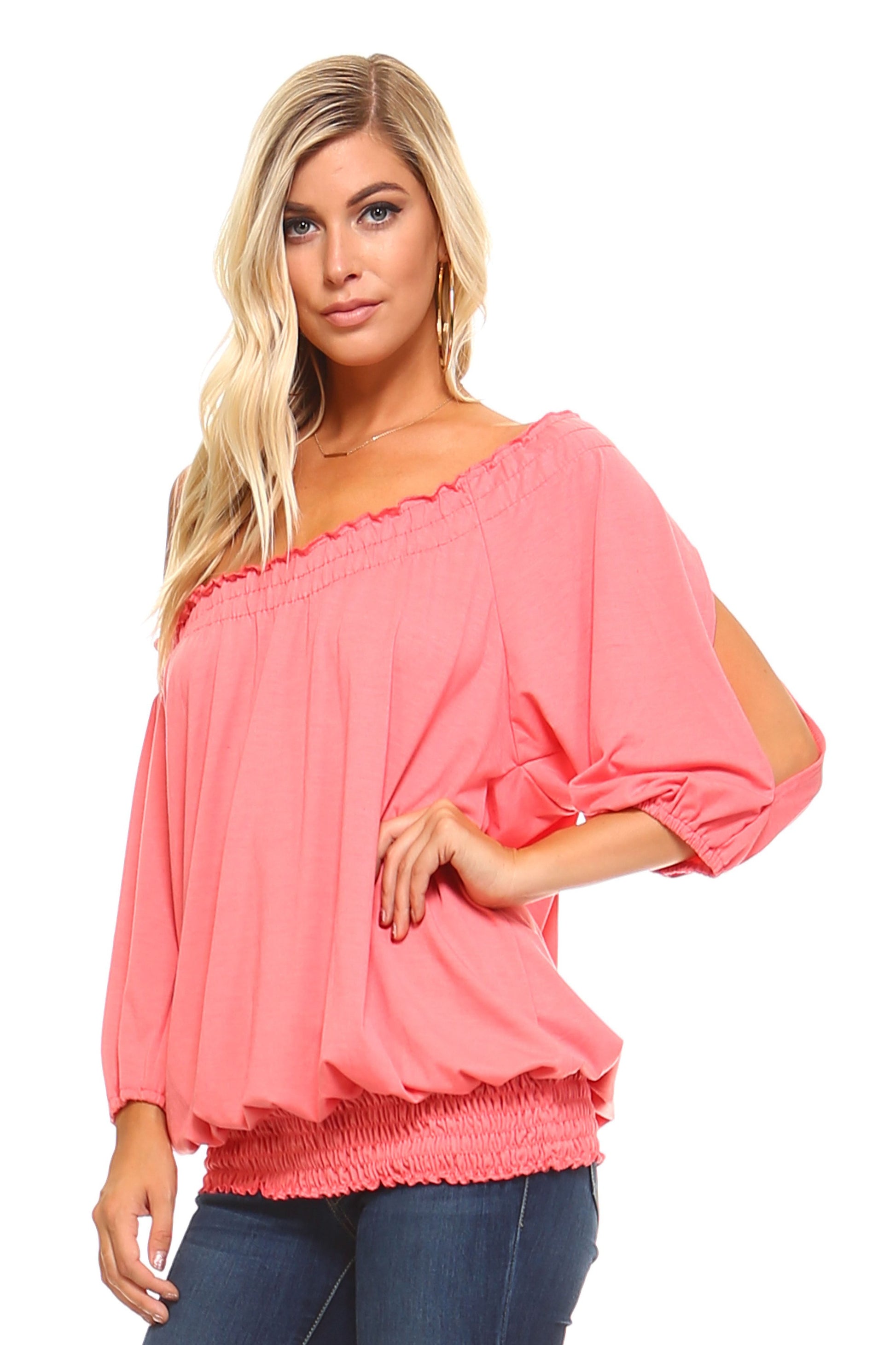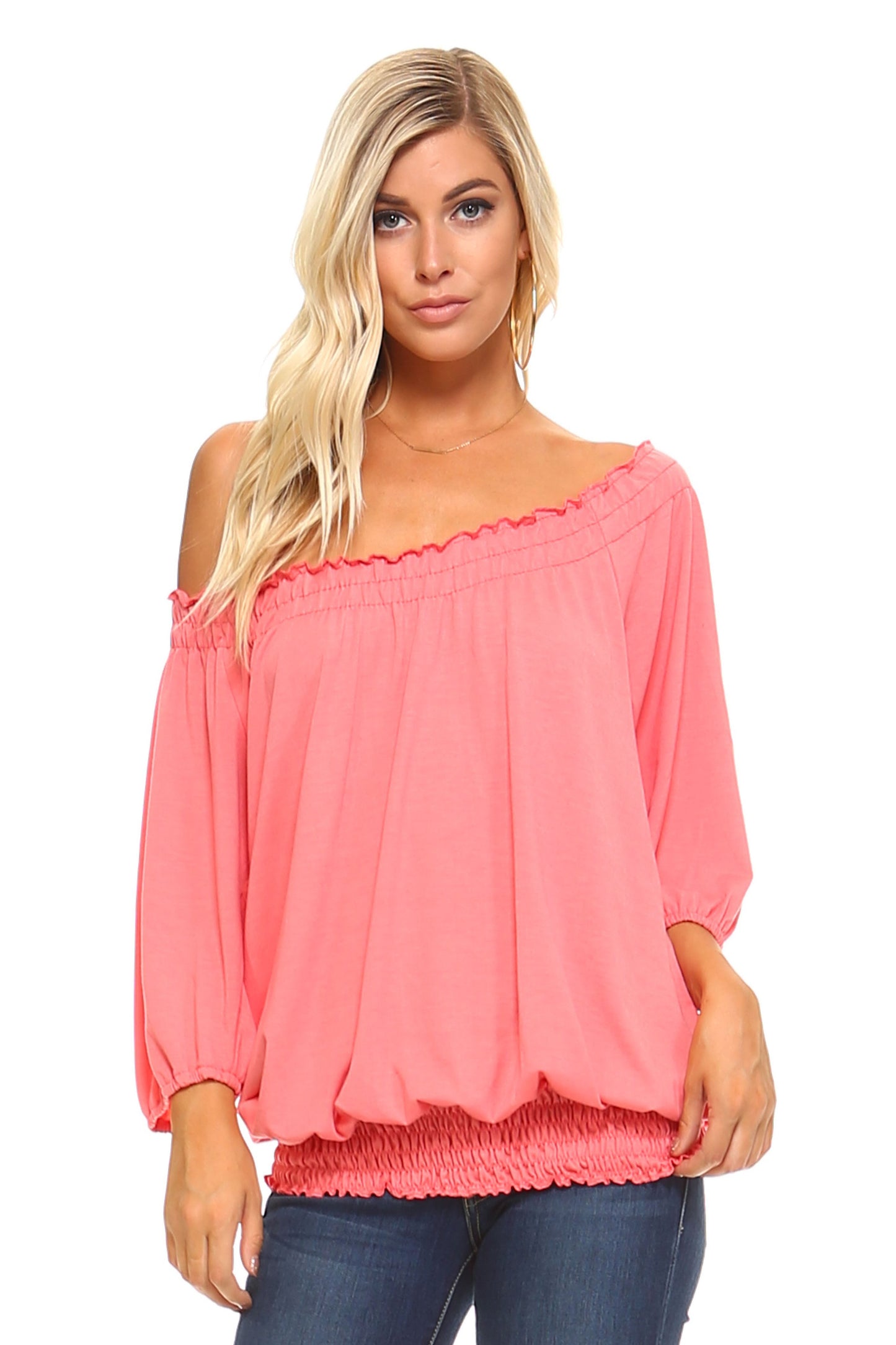 Willow Breeze: 3/4 Sleeve Peasant Top with Elastic Neckline