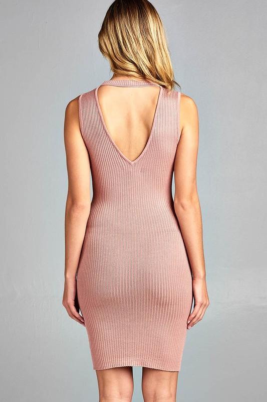 Make a bold statement in this sleek, sleeveless sweater dress. Designed with a ribbed texture and modern v-neckline, the standout choker detail adds instant edge. Whether you're heading out for dinner or dressing up for date night, this fitted silhouette is both flattering and unforgettable.